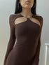 This rich, chocolate brown mini dress is the ultimate winter piece. Featuring a flattering bodycon silhouette, long, sheer sleeves and cut-outs on the front and shoulders, this style takes your winter fashion to the next level.