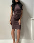 Turn heads and show off your hot figure in this elegant bodycon dress. Featuring a sophisticated mock neck, ruched front, cap sleeves, and a knee-length hem, this form-hugging style accentuates your figure in all the right places.