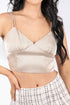 Look darling in this champagne satin After Party Crop Cami. Featuring a v-neckline, adjustable double straps and front princess seams, it really is the perfect party (and after party) top!