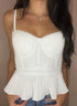 Turn heads in this striking lace bustier. With a peplum silhouette, sweetheart neckline, padded cups for extra push-up, and stunning, lace detailing throughout, everyone will be complimenting your look.
