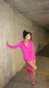 This long-sleeve satin hot pink dress will have everyone turning heads! The low cut neckline and flattering long sleeves create a perfect dress for a night out.